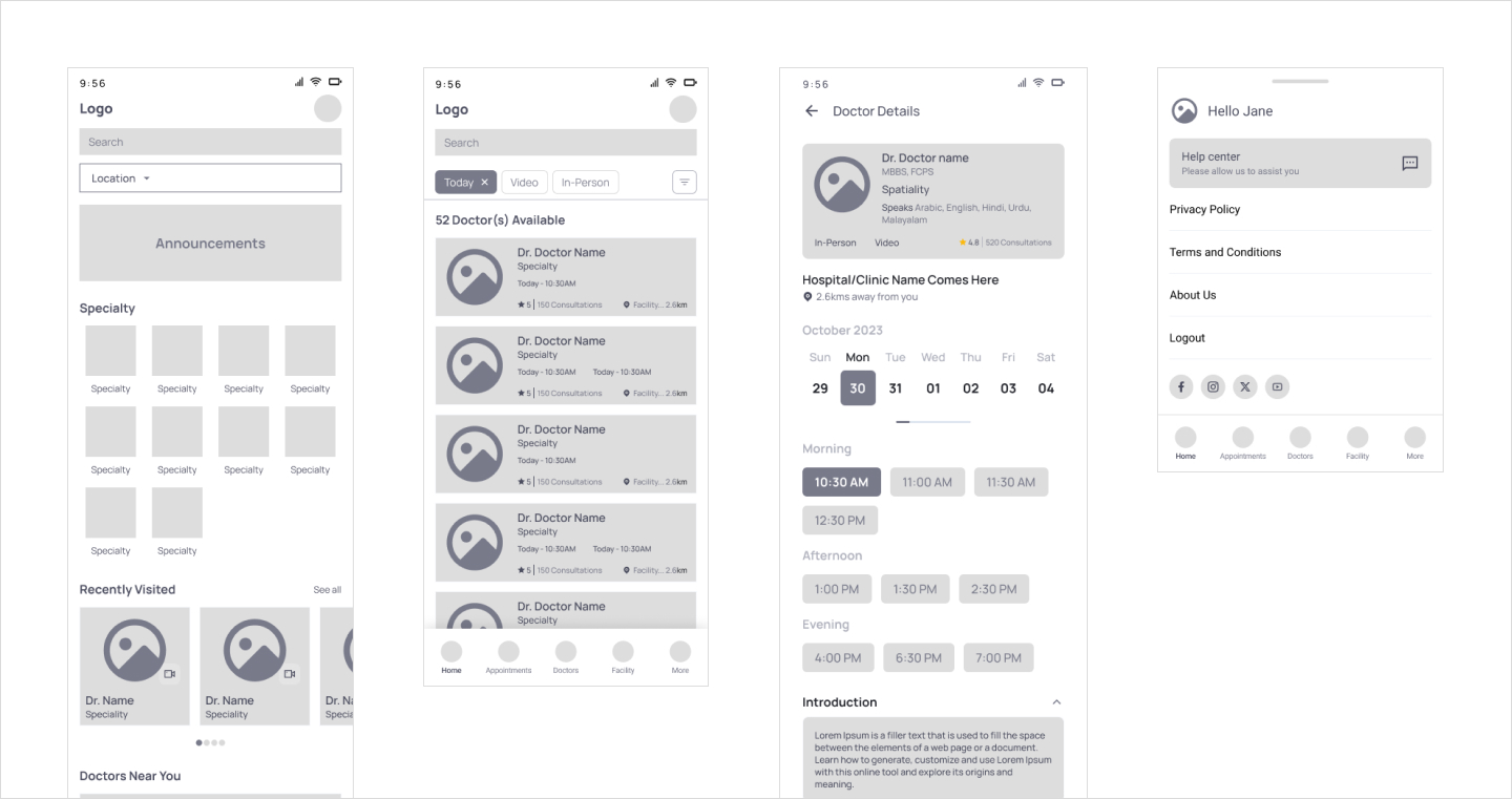 Objective: Design a seamless and accessible Doctor’s Consultation App that enables patients to connect with healthcare professionals easily, offering features like online consultations, appointment scheduling, and medical record management.
