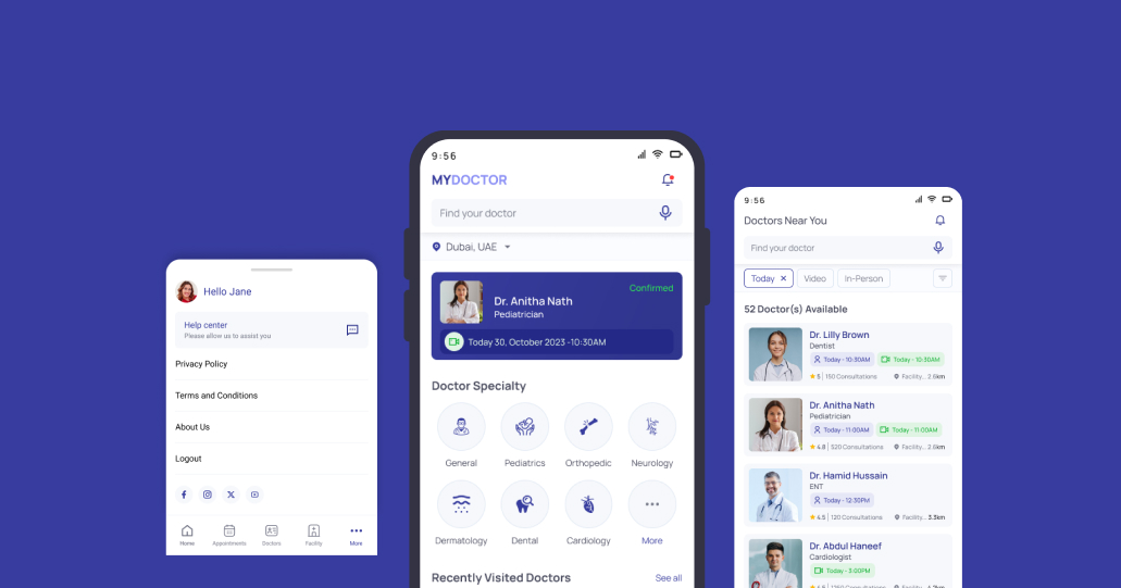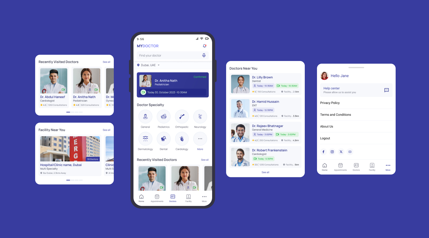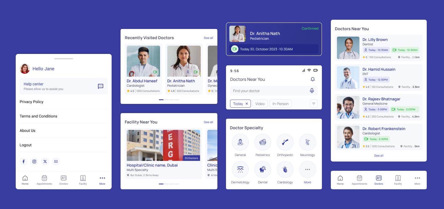 The final design of the healthcare mobile app for doctor consultation offers a seamless experience for both doctors and patients. Key features include: